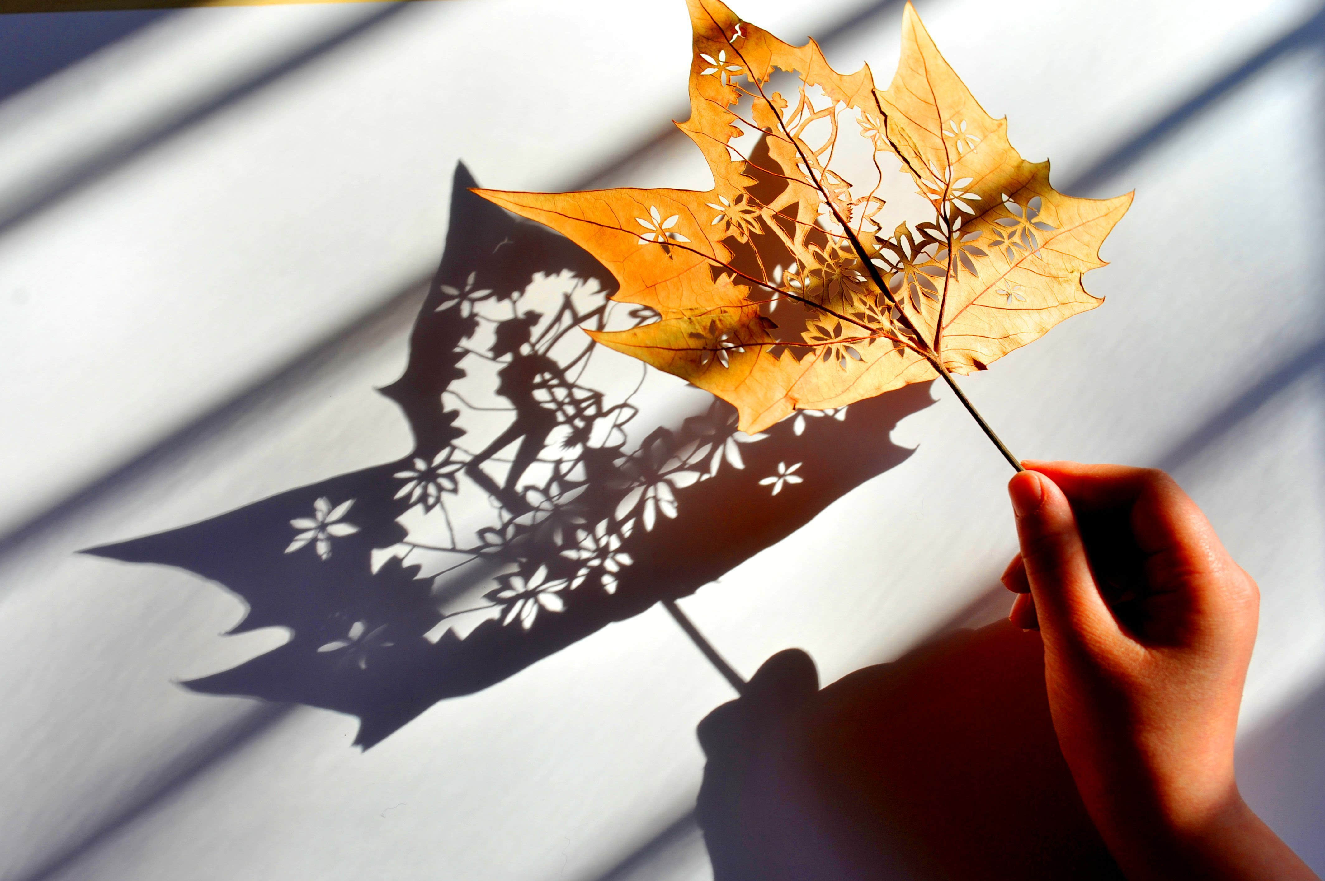 到了汉代,叶雕艺术的技艺已相当普及,有诗描绘了当时民间叶雕盛行的情景:“汉妃抱娃窗前耍,巧剪桐叶照窗纱。”阳光洒进窗户,映衬得叶上之花栩栩如生,惟妙惟肖。