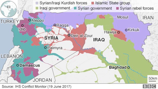 包括叙利亚边境城镇阿布卡迈勒(Albu Kamal)和伊拉克小镇加伊姆(al-Qaim)在内的两国交界处被ISIS称为“幼发拉底省”,BBC新闻也将其称为ISIS的“第三首都”。ISIS士兵从拉卡和摩苏尔撤退到此处后,以此为据点向叙利亚和伊拉克发动突袭。