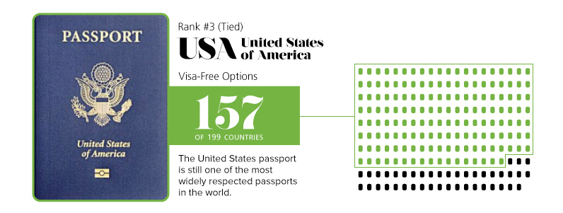 全球共有157个国家对持有美国护照的公民免签证入境。