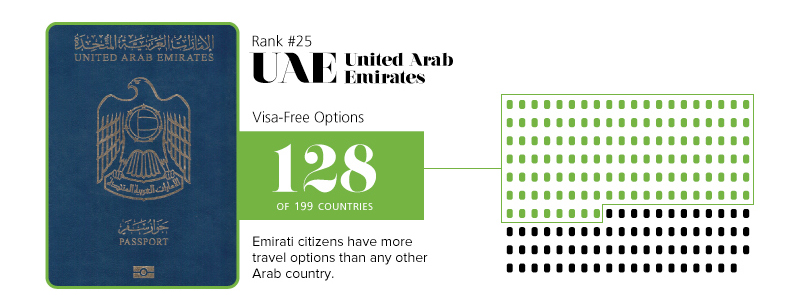 持有阿联酋护照的公民比其他中东各国公民拥有更多的选择,全球共有128个国家对阿联酋免签。