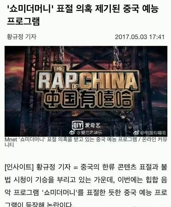 韩媒指责 “ 中国有嘻哈抄袭 ”