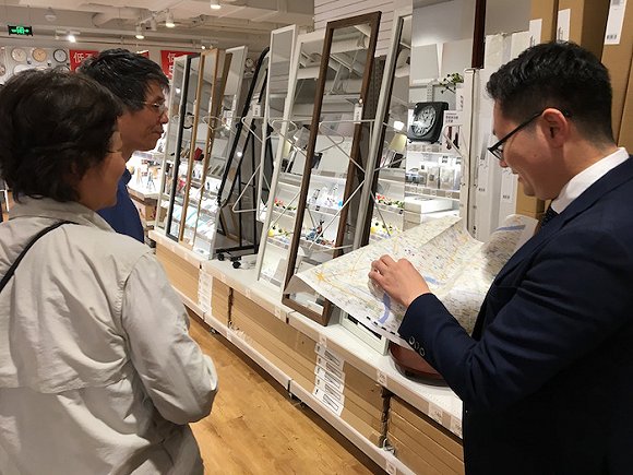而开业这一天,在NITORI负责市场调研的古贺太三拿着一张地图,挨个问到店客人是从哪儿来到徐汇店的、乘坐了哪种交通工具。从开店一个半小时后,古贺太三的统计结果来看,大多数人还都是在附近逛街的人。而由于是工作日,这部分人多是早上买完菜、散完步的中老年人。