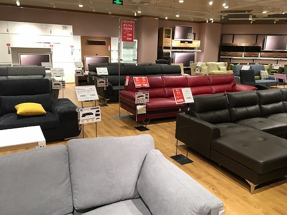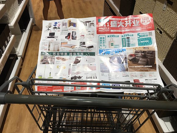 不过,从开业当天NITORI发放的购物指南来看,它更希望你去买沙发和床这样的大件。为此,它推出了满999元及以上单件家具可免配送和安装费的活动。