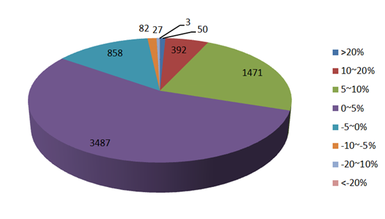 据私募排排网数据中心统计,6月股票策略私募产品的平均收益率为3.40%。整体来看,私募产品收益率差异较大,首尾相差89.53%。在计入统计的6730只私募产品中,有5400只产品收益率为正,占比高达84.77%,多数产品盈利在5%以内,也有50只产品收益率超过了20%。
