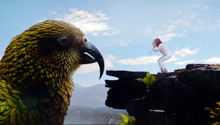 在片子里,你可以看到巨大的蒲公英在南阿尔卑斯山(新西兰最高山脉)上漫天飞舞,游客在新西兰当地的甜品上滑雪、在厚厚的云层上玩皮划艇,巨型风车在惠灵顿的农场上随风舞动,五颜六色的鲜花从海底绽放。