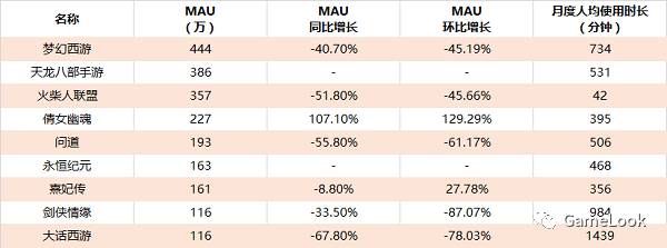 不过值得注意的是,MMO游戏月度人均使用时长都非常惊人,底蕴十分深厚。《大话西游》月度人均使用时长就达1439分钟,超过自家兄弟产品接近一倍,比《王者荣耀》还要高出34.53%。