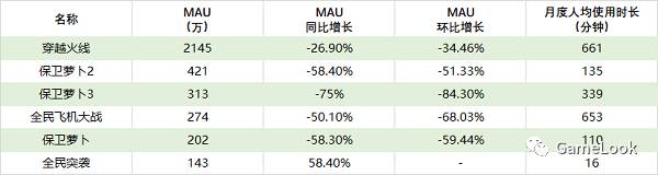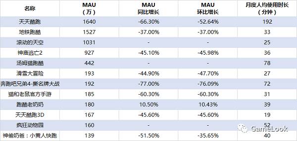 今年入榜的产品一共12款,相比去年减少10款;MAU总和6783万,相较去年同期的1.1亿减少近一半。领头羊《天天酷跑》的MAU减少或许是是主要原因。