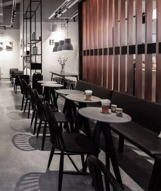 虽然喜茶因人满为患、门前长队而知名,其实它店内的桌子、椅子、灯具都很特别,均来自国内的水泥家居品牌——本土创造。
