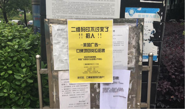 美茵广告公司原本只是一家经营各种印刷业务的门店,2013年二维码在国内火起来以后,开始接二维码的订单。互联网平台之间的“战况”如何,对美茵来说,最直观的感受就是订单量。