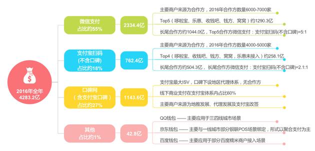 对于线下商业支付市场而言,线下商户的拓展是重中之重,而合作方依然是微信支付与支付宝扫码(不含口碑)商户拓展的主力军。