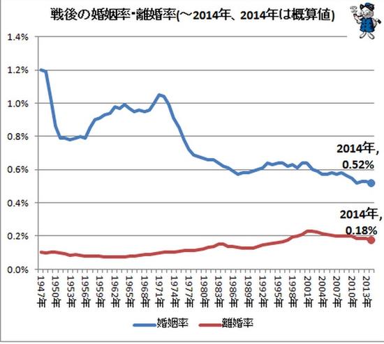 而在追求幸福和自我价值实现的路上,即便双方婚姻不幸,日本离婚率也依旧低于国际平均水平。2014年日本媒体的对比调查数据显示,当时俄罗斯的离婚率为0.45%,美国为0.36%,而日本只有0.18%。