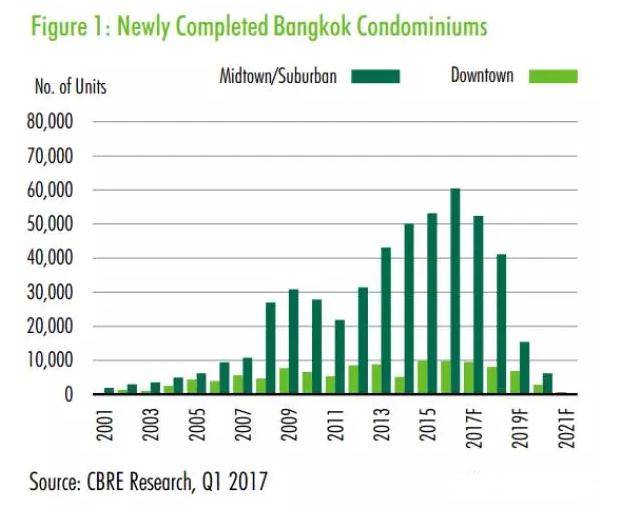 曼谷公寓在2017年第一季度,由于银行严格按揭标准,曼谷房产市场依然缓慢,经济复苏现象保持。总的来说,市区对公寓单位的需求依然强劲,往年与2017年第一季度相比,市中心及郊区的需求依然旺盛,销售率为70.1%。与此同时,市中心区域的需求量由于转售单位的风险较高,低收入的用户继续面临抵押贷款的挑战以及市场投资者较少的挑战,市中心及郊区的非计划销售项目有所减少。