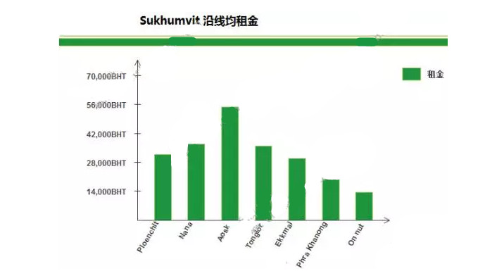 尤其最为明显的地段归属于BTS一号线Sukhumvit(素坤逸),该线路由于是曼谷的高端住宅区域,外籍人士众多,娱乐加上景点聚齐,使得该线路上的房价一路飙涨,拥有了曼谷最高的入住率!而随着曼谷交通规划以及经济的发展趋势,使得该路线上的一房租金以往8000-9000泰铢/月的房租,直升至今如今最低租金15000起步!高端住宅一房平均租金60000泰铢/月。