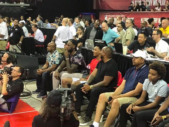 北京时间7月13日,在夏季联赛上,洛杉矶湖人迎战费城76人。勒布朗•詹姆斯到场观看引发围观。