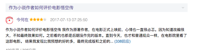 今天,电影终于上映了,一向直言从不怕开罪粉丝的今何在也在豆瓣给出了自己的评价,或者说是对粉丝的一个解释——完美的《悟空传》只能存在于你们的想象里。
