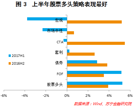 上半年表现最好的两类策略是股票多头策略和组合基金策略(FOF),上半年收益分别是5.25%和5.19%。