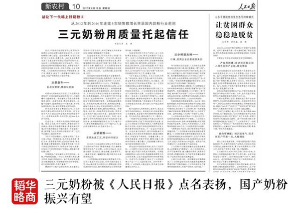如今,洋品牌依然占据着很大市场份额,但消费者正逐步看清“假洋鬼子”的真面目。三元智造的良心国粉得以逆势突袭,成为越来越多人的新选择。难得的是,在中国统计信息服务中心发布的国产奶粉口碑榜上,三元奶粉已经夺得口碑“七连冠”;《人民日报》也刊发专文《三元奶粉用质量托起信任》,怒赞三元奶粉,称其为“良心国粉”的代名词。