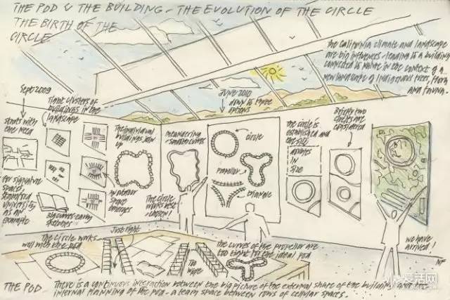 彼时已经重疾缠身的乔布斯,展开了他为“像野草一样疯长”的苹果设计的容纳1.3万人,全弧形玻璃楼、地下停车场、6000颗树、清洁循环能源的新蓝图。