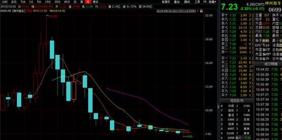 神州租车于2015年股价达到顶峰的22港元后,连跌2年,至今徘徊在7港元附近,跌幅最高达70%。
