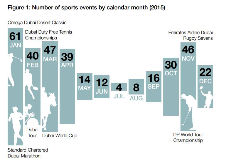 2015年迪拜体育赛事数量(数据来源:《迪拜体育经济影响》报告)