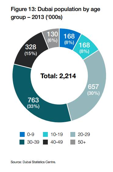 2013年迪拜人口总数及年龄分布(数据来源:迪拜统计中心)