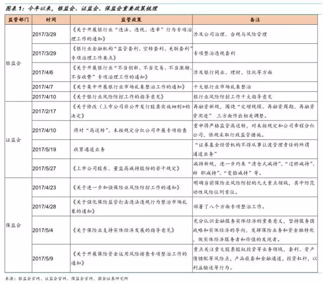 一、今年以来,金融监管不断加码,“三会”政策频出,剑指金融去杠杆