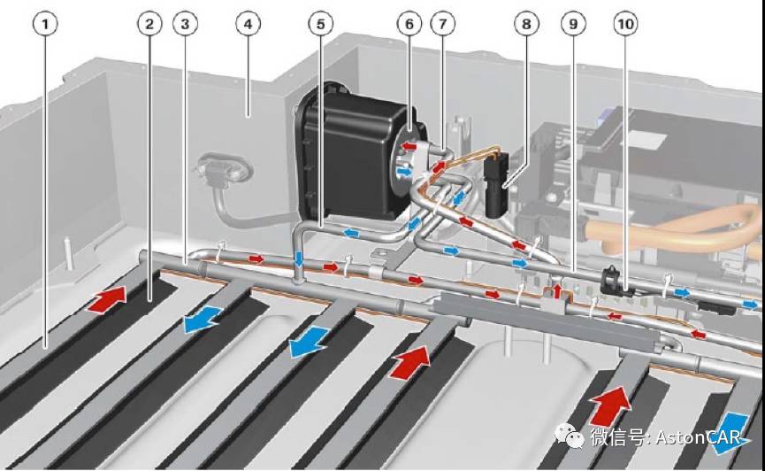 宝马的电池技术相对比较保守,采用了传统的片状设计,热管理仅仅通过底层的管路进行。这样导致的后果就是靠近底层的单体热交换较多,而远离底层的单体热交换较少,同时进水口和出水口附近单体温度偏差较大。所以i3的电池包正常工作范围只能到40度。不过整个电池包被分成了三组冷却,一定程度上解决了温度均衡问题。