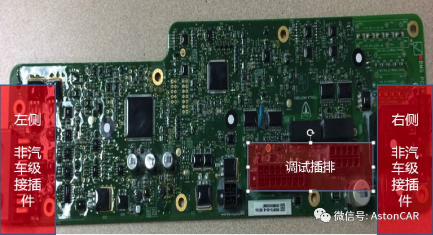 大概是出于IT公司背景,特斯拉的硬件电路板所采用的接插件并非汽车级,两个插排更像是调试接口,这种接口在IT产品上经常使用,但在粉尘、振动等恶劣的汽车运行环境中使用,是否会产生问题,那仍是一个未知数。如果不是亲眼看到这块来自于拆车实拍的板子,很难让人相信特斯拉的心如此之大,敢用这样不满足汽车级安全要求标准的电路板。