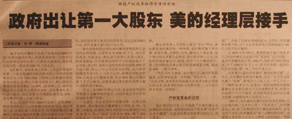 2001年初,经过反复“协商”,美的管理层收购了代表政府的第一大股东——顺德市北窖投资发展有限公司的股权,管理层成了美的真正的主人。