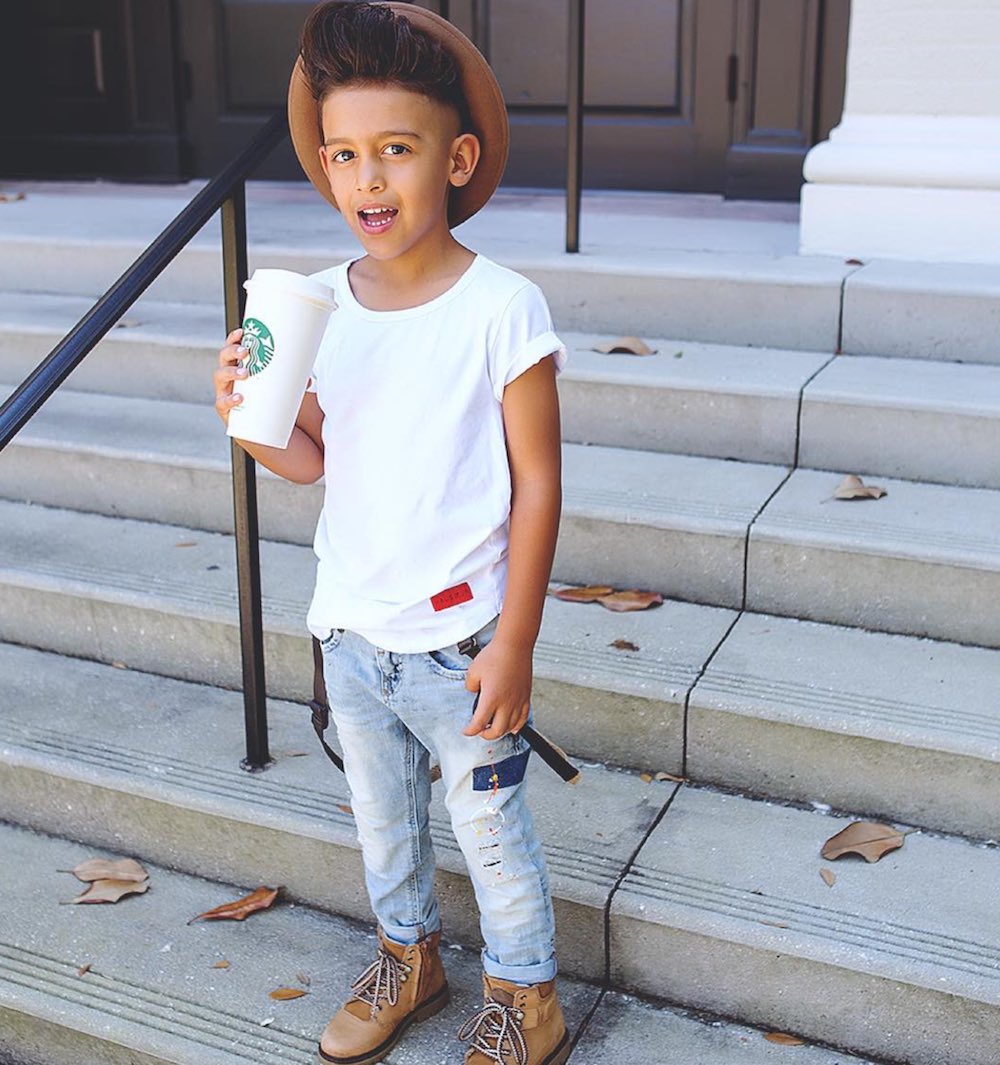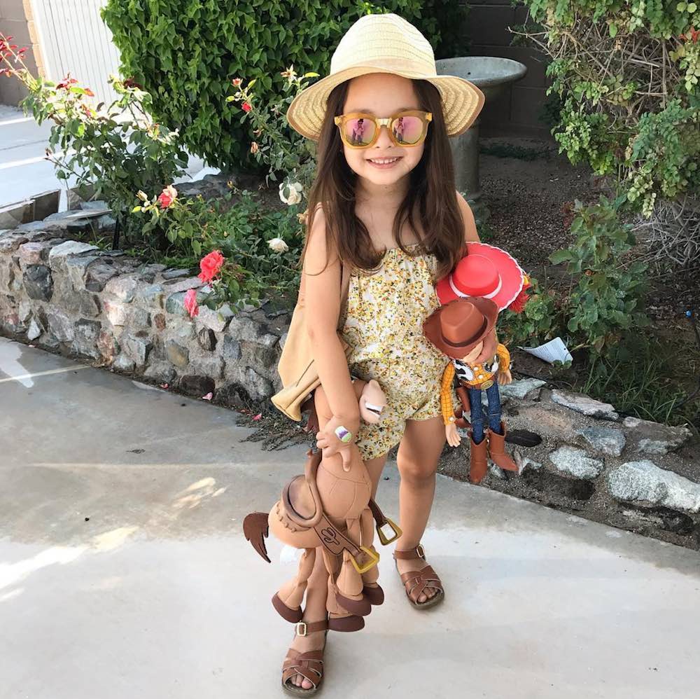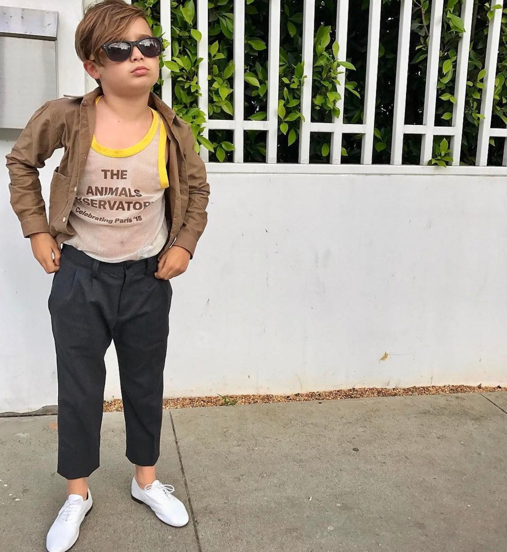顶着爆炸头的Scout的穿衣风格相对来说就比较像摇滚甜心。别看年纪小,她已经是专业的签约模特了,那种酷酷的眼神你可学不来。她妈妈还为她开了一个专属blog,分享她和孩子日常的穿搭,是位专业的“晒娃狂魔”。Scout刚出生的弟弟也没能逃脱妈妈的爪牙,俨然已经是个娃娃博主了。