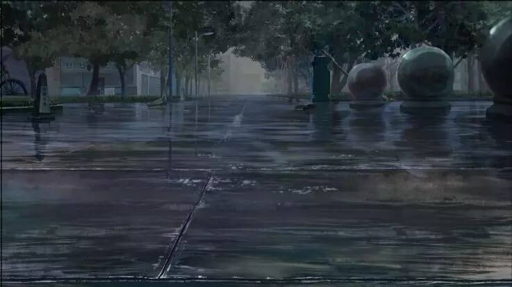 段海燕:我是喜欢他的后期,他的和京阿尼的后期都属于较写实的,会考虑到现实中的因素,比如说下雨,会有雨滴,滴在地面上会有溅起来的水花,以及和场景中的物体(比如自行车一类)接触后会产生碰撞的粒子之类的。