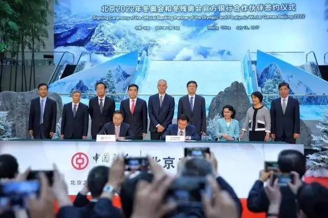 2017年7月13日,中国银行与北京冬奥组委举行签约仪式,中国银行成为北京2022年冬奥会和冬残奥会官方银行合作伙伴。中国银行是北京冬奥组委签约的第一家官方合作伙伴,也是北京冬奥组委市场开发计划最高级别赞助企业,这标志着北京冬奥组委市场开发计划取得重要进展。