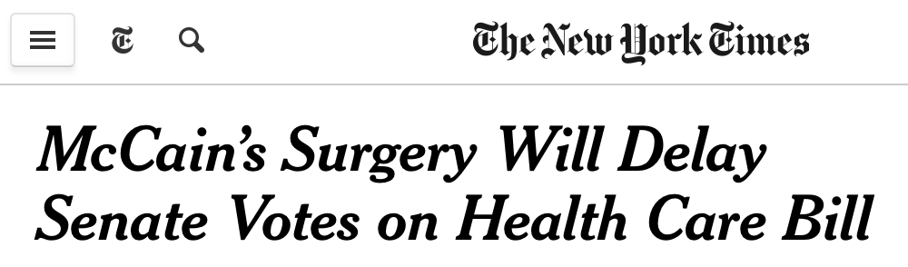 麦康奈尔说,原定于这周进行的投票将会推迟进行,主要原因在于亚利桑那州代表麦凯恩(John McCain)因为刚做完手术将会缺席。麦康奈尔曾表示,他想在本周开始通过特别的快速通道程序开始关于该法案的辩论,但如果没有麦凯恩,参议院共和党人就不会有足够的选票来接受或通过他们的法案,以废除和取代奥巴马医疗法案。
