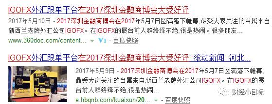 现在在网络上搜索,依然能找到IGOFX在2017深圳金融商博会上大受好评的信息。