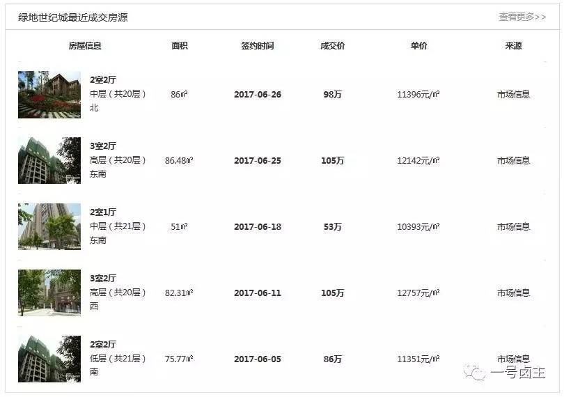 成交价格可以在很大程度上反应该小区的实际价格,也就是说,绿地世纪城小区的实际价格在6月已经达到了1.1-1.2万之间!