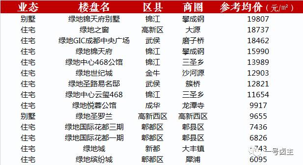 在绿地开发商入驻成都的大概14个楼盘里(含别墅、分期),排名大概第6名!