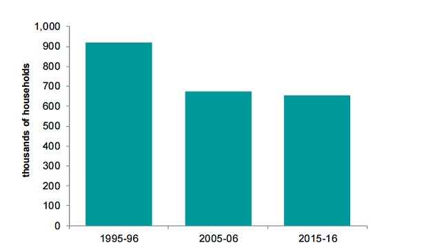 该调查是英国政府所进行的英国住房调查中的一部分。调查显示,如今的首次购房图景惨淡。二十年前,每年的首次购房者有92.2万人,而从2016年到2017年,该数字已经下降到了67.5万人。