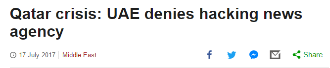 卡塔尔称5月份国家新闻社被入侵事件是阿联酋主使,并指出此事件两周后阿联酋就联合其他海湾国家宣布与卡塔尔断绝外交关系、对卡塔尔进行全方面制裁。