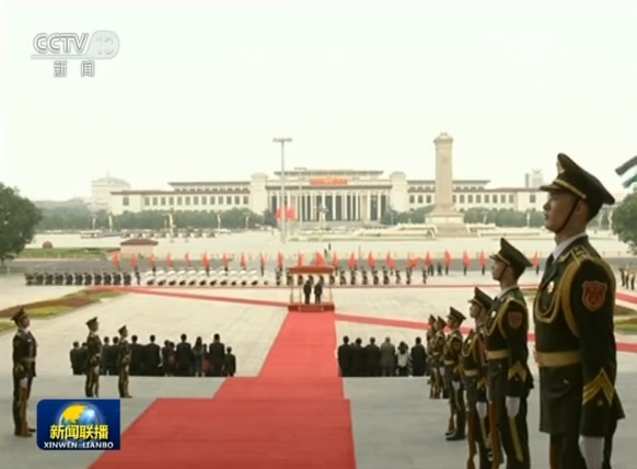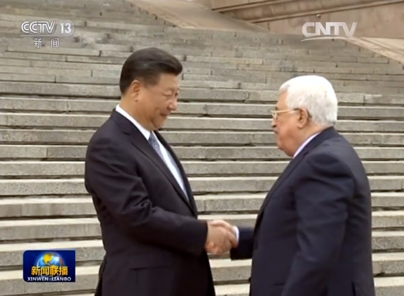 国家主席习近平18日下午在人民大会堂东门外广场举行仪式,欢迎巴勒斯坦国总统马哈茂德·阿巴斯对中国进行国事访问。