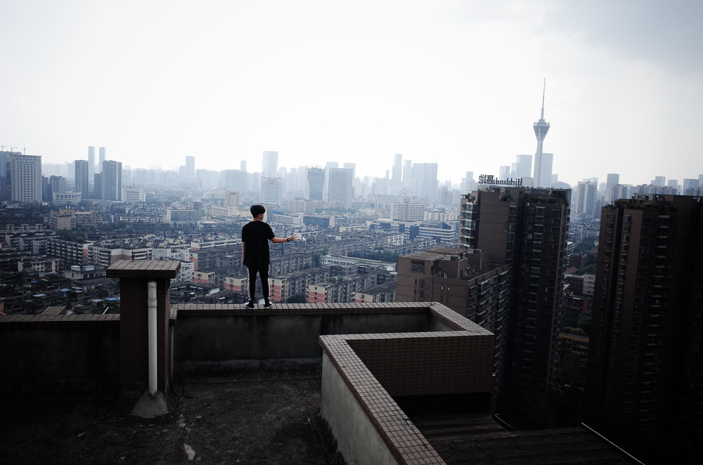 讲到这里,陈泽宇咂了两口冰咖啡。我问:“那条微博你知道吗?成都跑酷的,在楼顶。”