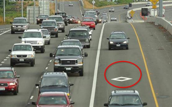 Carpool在入口前方就会设置标志牌,请注意观察,如果你不符合要求,一定不要乱入。除此之外Carpool路上会有特殊的符号,请认清这个菱形符号: