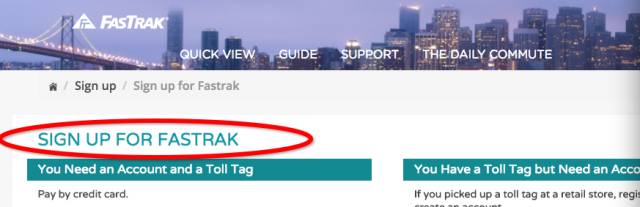 你需要注册一个账户,填好你的个人信息。加州湾区注册网址:https://www.bayareafastrak.org/en/signup/signUp.shtml