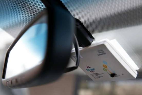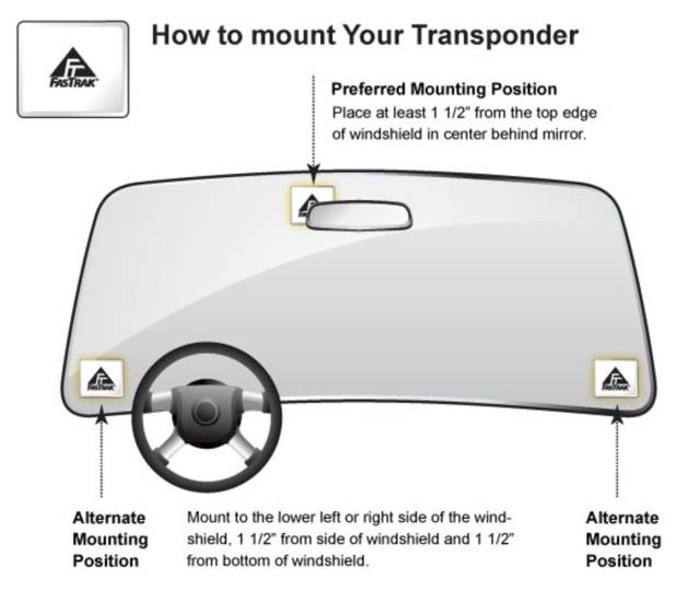 将收费标签横放在后视镜背面中部,应距离挡风玻璃顶端至少两英寸距离。