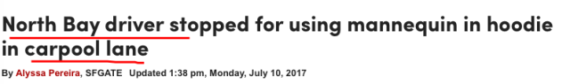 而在加州用类似招数伪装车上不止一个人的司机还大有人在~