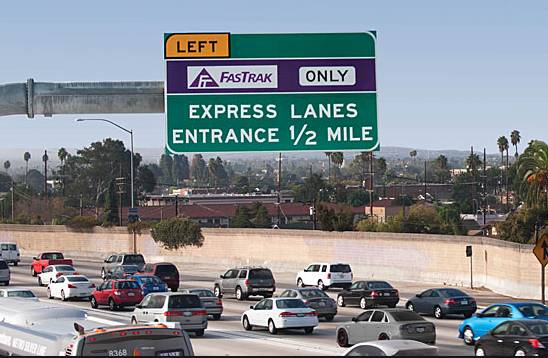 优惠通道:最左边的HOV车道和#3车道(从右算起)