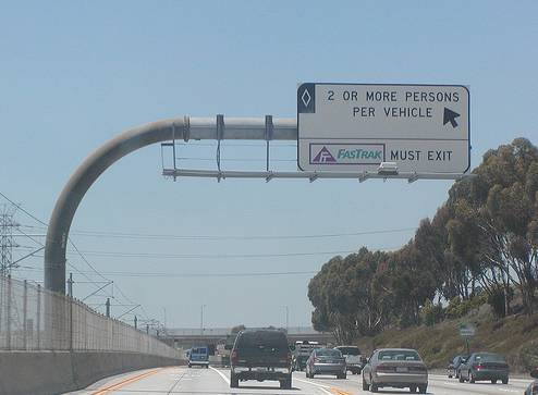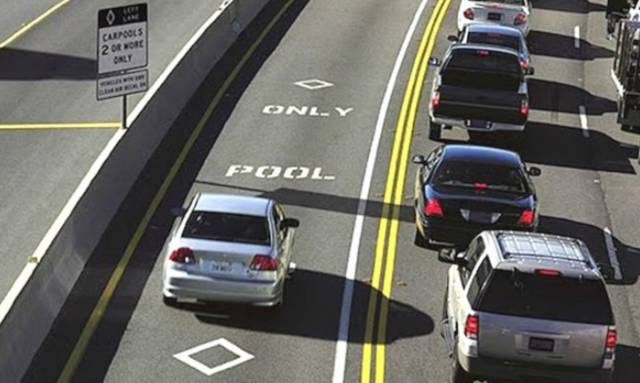 我们常说的Carpool也叫"High Occupancy Vehicle" lane,(简称HOV车道)。它仅供乘坐数量至少达到某一规定的车辆通行,这种高速在加州非常常见,一般在道路的最左侧。这类车道的目的在于鼓励共乘、使用大众运输工具以降低交通壅塞并减少车辆排放造成的空气污染,在上下班高峰期的时候就能发挥它的功效。