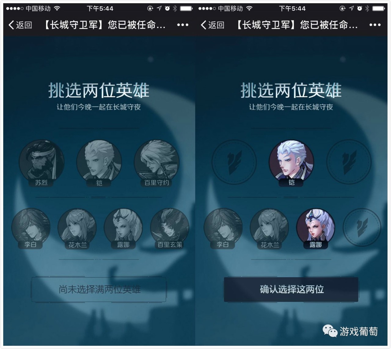 值得一提的是,在上述运营活动之外,官方还发起H5营销,用游戏推动话题宣传,为玩家建立认知。或许不少人最初对长城守卫军的概念还比较陌生,对其中为什么会有铠,露娜,李白,花木兰等角色感到诧异。期间官方通过自制小游戏的方式,为其故事背景和角色羁绊做了铺垫,也顺带解决了这些疑问。