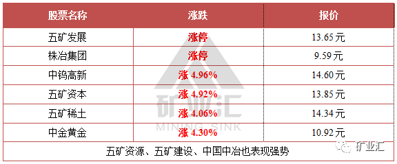 消息传出后,港股中国黄金国际一度暴涨超过8%、五矿资源由跌2%转涨1.4%。