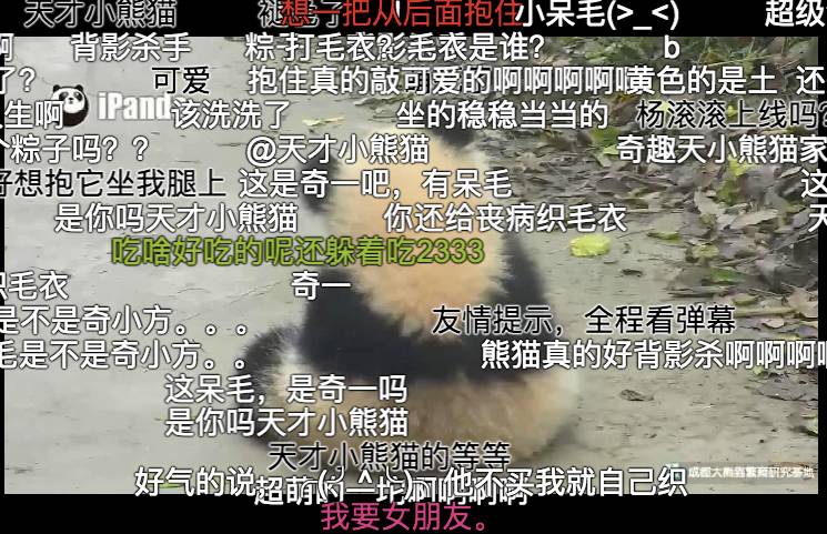 “奇一”一举成为网络红“熊”,不仅登上央视新闻,开设了单独的直播,还吸引到一大拨“云吸熊猫”的热情粉丝。在B站上,一个它背对镜头坐着一动不动的两分钟视频,获得了密集的弹幕和超过20万的点击率。