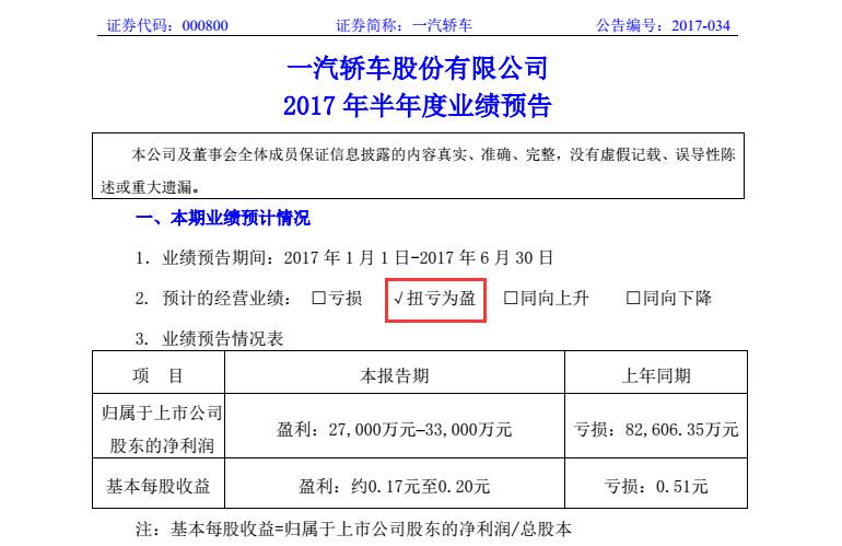 近日,一汽轿车刚刚发布了业绩预增公告,预计今年上半年业绩扭亏为盈,上半年净利润将达2.7亿—3.3亿元,相比于去年同期亏损达8.26亿元,在经历一系列调整后,一汽轿车渐渐恢复元气。